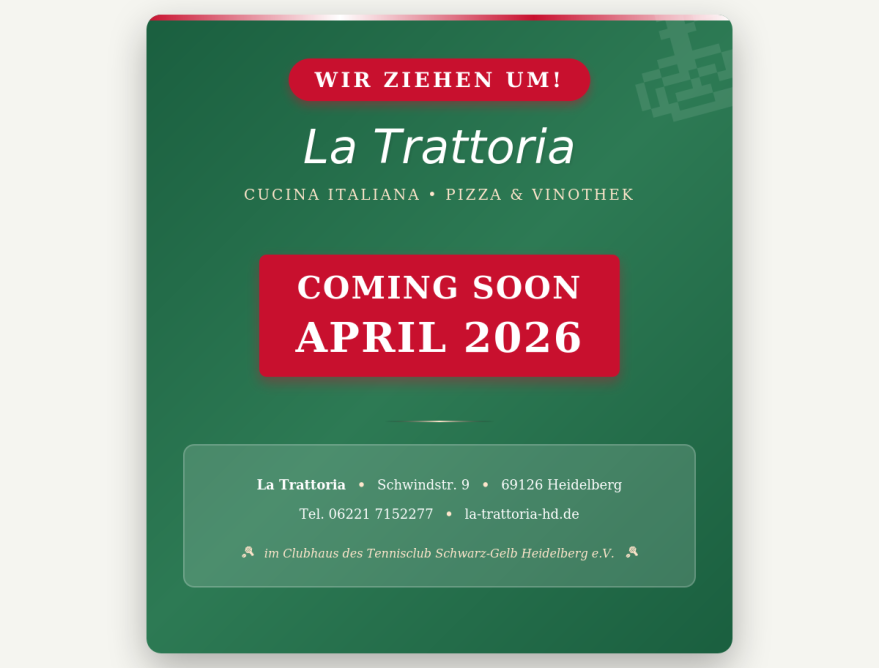 Sie finden in der Goldenen Rose den optimalen Ort für Genuss, italienische Lebensart und schöne Stunden. Wir bieten Ihnen traditionelle italienische Küche mit täglich frischem Fisch und - neben unserer Speisekarte - aktuelle Spezialitäten, die Sie auf unseren Tafeln im Restaurant finden. Natürlich gehört auch der italienische Wein zum mediterranen Lebensgefühl - für Sie gibt es eine große Auswahl aus den besten italienischen Anbaugebieten in jeder Qualitätsstufe, fachkundig selektiert von Dr. Detlef Werner, der Sie ebenfalls begrüßen möchte: "Ich freue mich, das die echte und typische italienische Küche der Goldenen Rose auch ebenso hervorragende Weine begleitet wird." Dieses Angebot gibt es auch für Ihre Familienfeier, Bankette, Tagungen oder als Catering - fragen Sie uns ganz einfach. Wir wollen ALLES tun, was zu Ihrer vollständigen Zufriedenheit führt: Wenn Sie Wünsche, Anregungen oder Kritik haben, lassen Sie es uns bitte wissen!